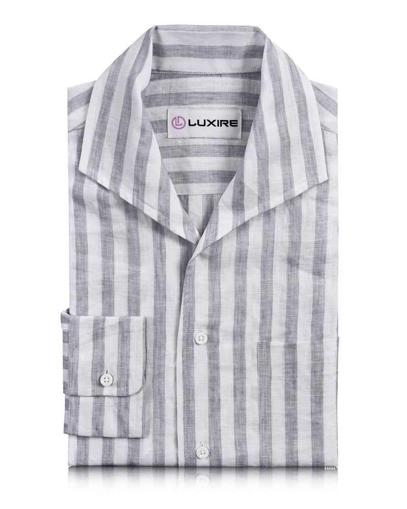 Linen: Grey Tape Stripes On White Shirt