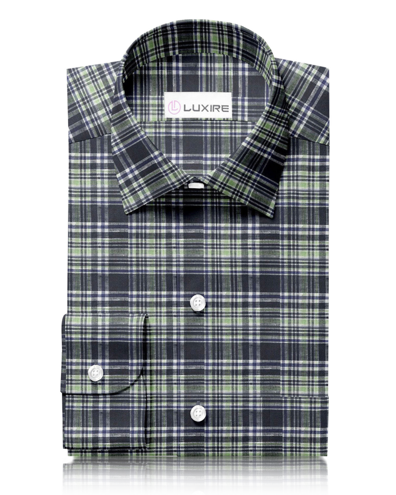 Madras Navy Green Checks Linen