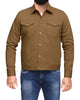 This shirt jacket's styling is as shown in the images.